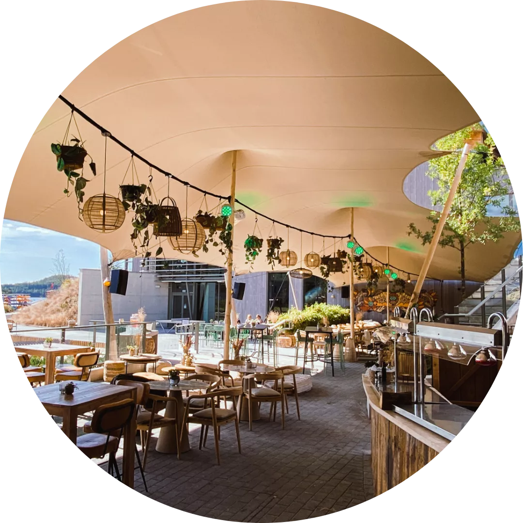 Dopolavoro Restaurant Terrace: 3x Interconnected Custom Strech Tents in ‘Chino' (360 m²)