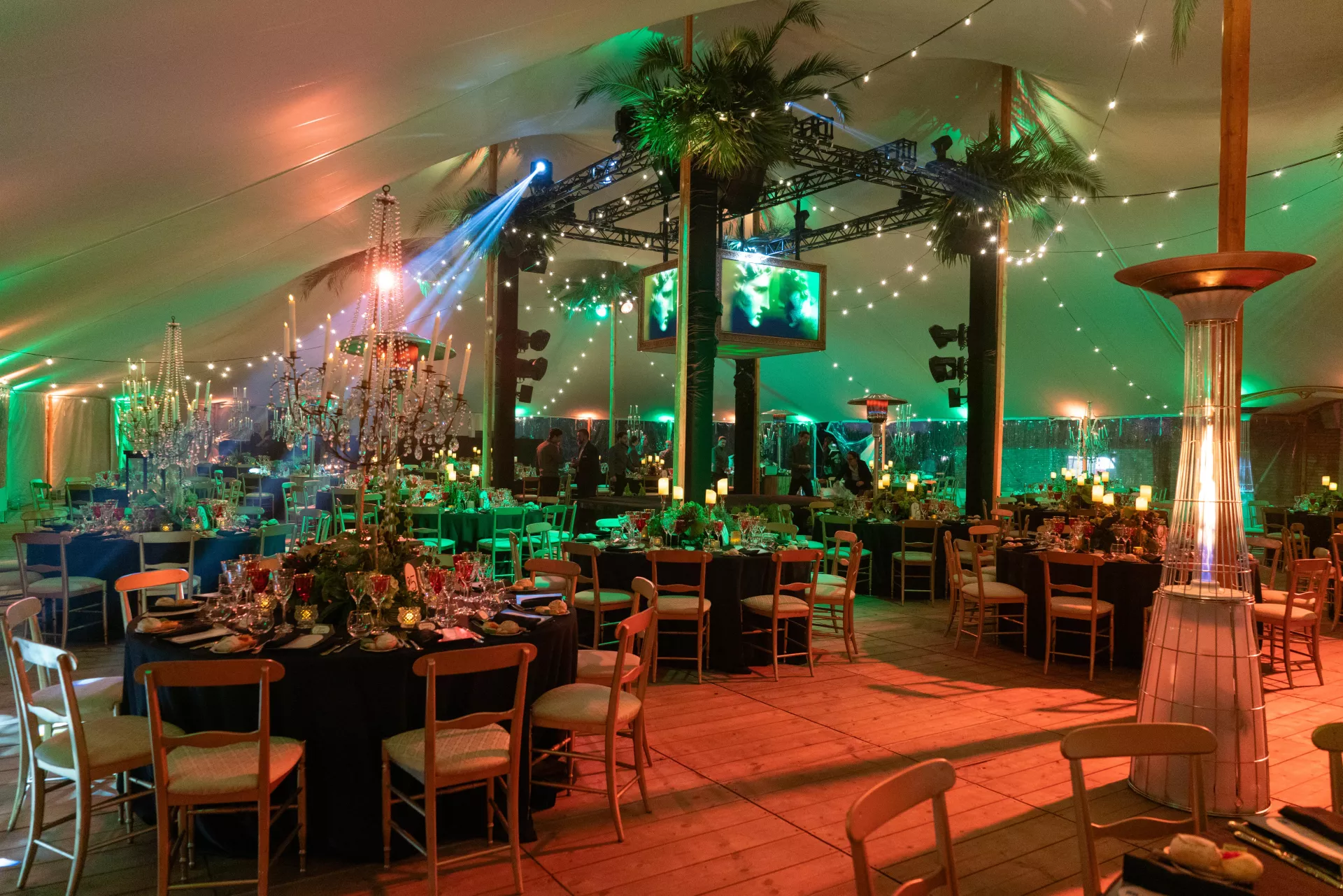 Under the Bamboo Tipis and Silhouette Tent we used our floor system — a modular wooden system that’s easy to level, compact to transport and store & fully produced in-house.