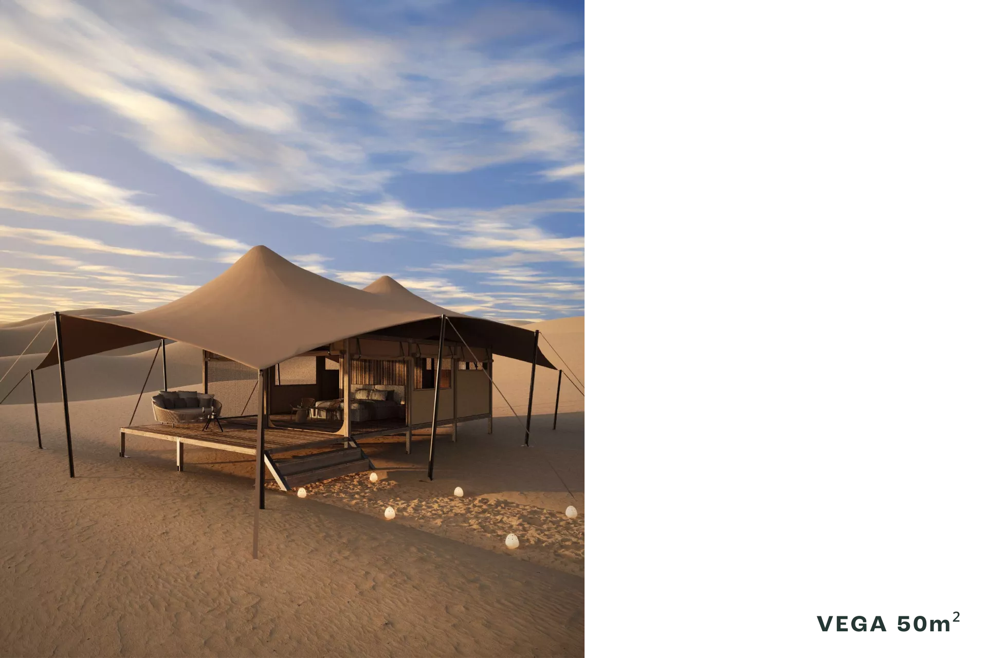 Designed and engineered as luxury temporary accommodation for eco-sensitive environments, these ingeniously simple modular timber-frame and stretch tent structures are quickly installed and easily relocated or removed – leaving behind only a lasting impression of quality, comfort and clever design.