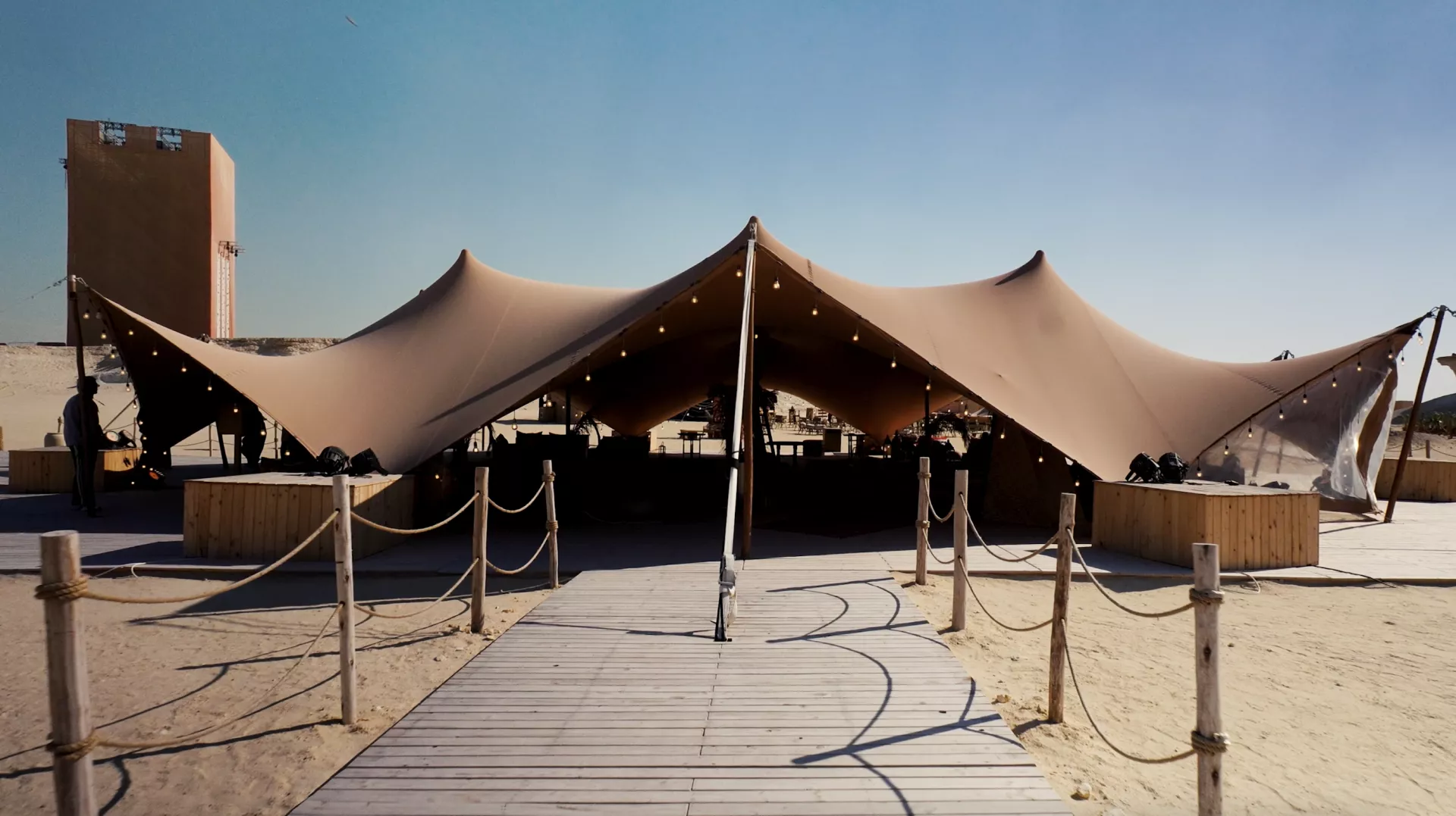 We collaborated from the early concept phase through to the professional on-site execution of this glamping and desert activation project in a natural desert setting. This pop-up destination brings together traditional craft workshops, children’s activities, authentic dining, retail, outdoor cinema and cultural experiences. Organic-Concept delivered and installed a combination of beige stretch tents, Cloud structures and shaded bell tents, creating a coherent and functional landscape adapted to the desert climate. All structures were engineered for durability, comfort and visual harmony with the surroundings. In close collaboration with local partner ADS, the project was realised as a high-quality destination that celebrates Qatar’s heritage and outdoor lifestyle.