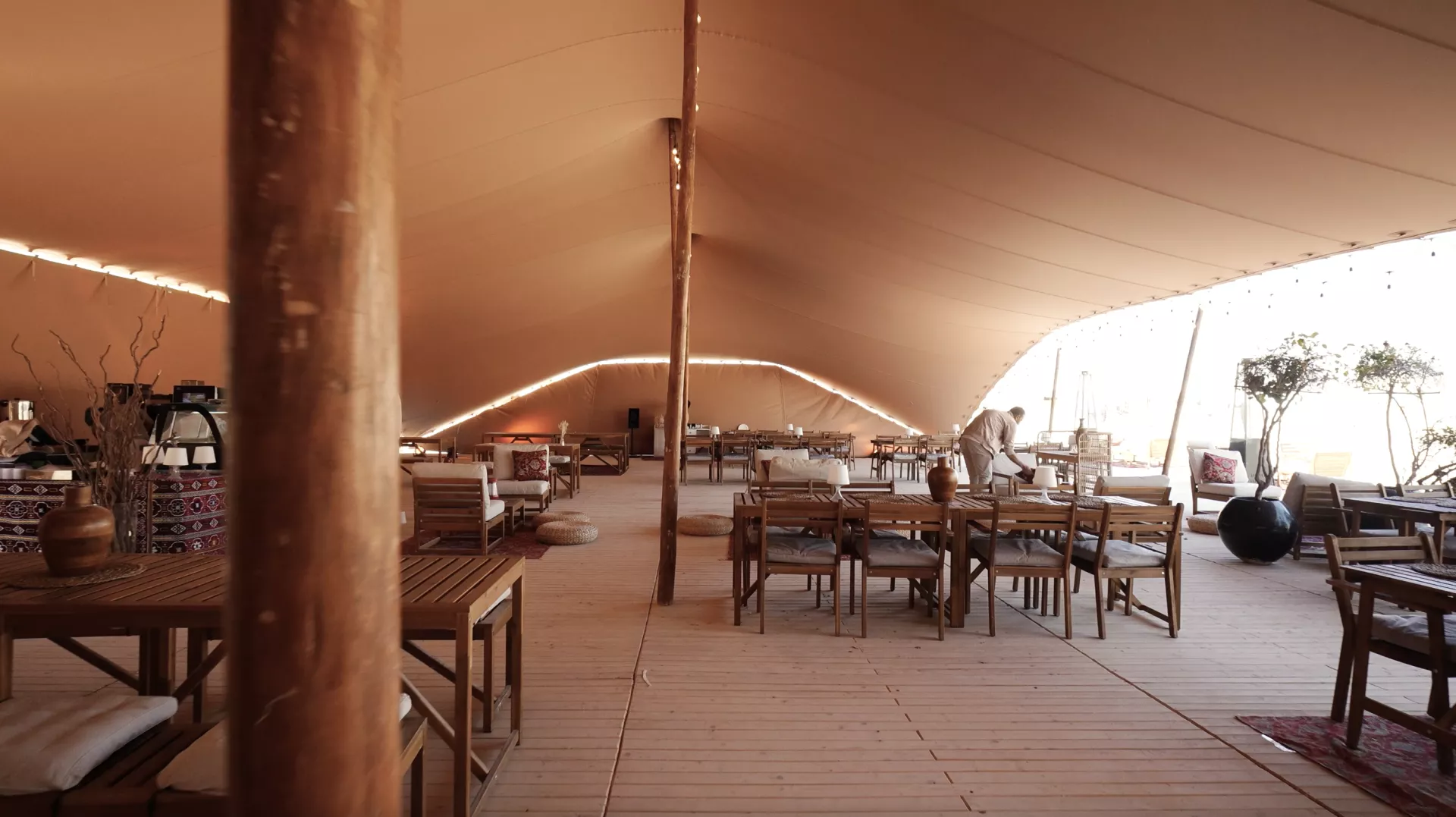 For Visit Qatar, we collaborated from the early concept phase through to the professional on-site execution of this glamping and desert activation project in a natural desert setting. This pop-up destination brings together traditional craft workshops, children’s activities, authentic dining, retail, outdoor cinema and cultural experiences. Organic-Concept delivered and installed a combination of beige stretch tents, Cloud structures and shaded bell tents, creating a coherent and functional landscape adapted to the desert climate. All structures were engineered for durability, comfort and visual harmony with the surroundings. In close collaboration with local partner ADS, the project was realised as a high-quality destination that celebrates Qatar’s heritage and outdoor lifestyle.